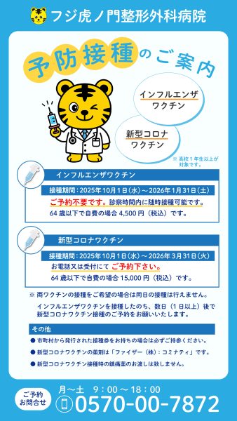 インフルエンザワクチン・新型コロナワクチン接種開始のお知らせ|フジ虎ノ門整形外科病院