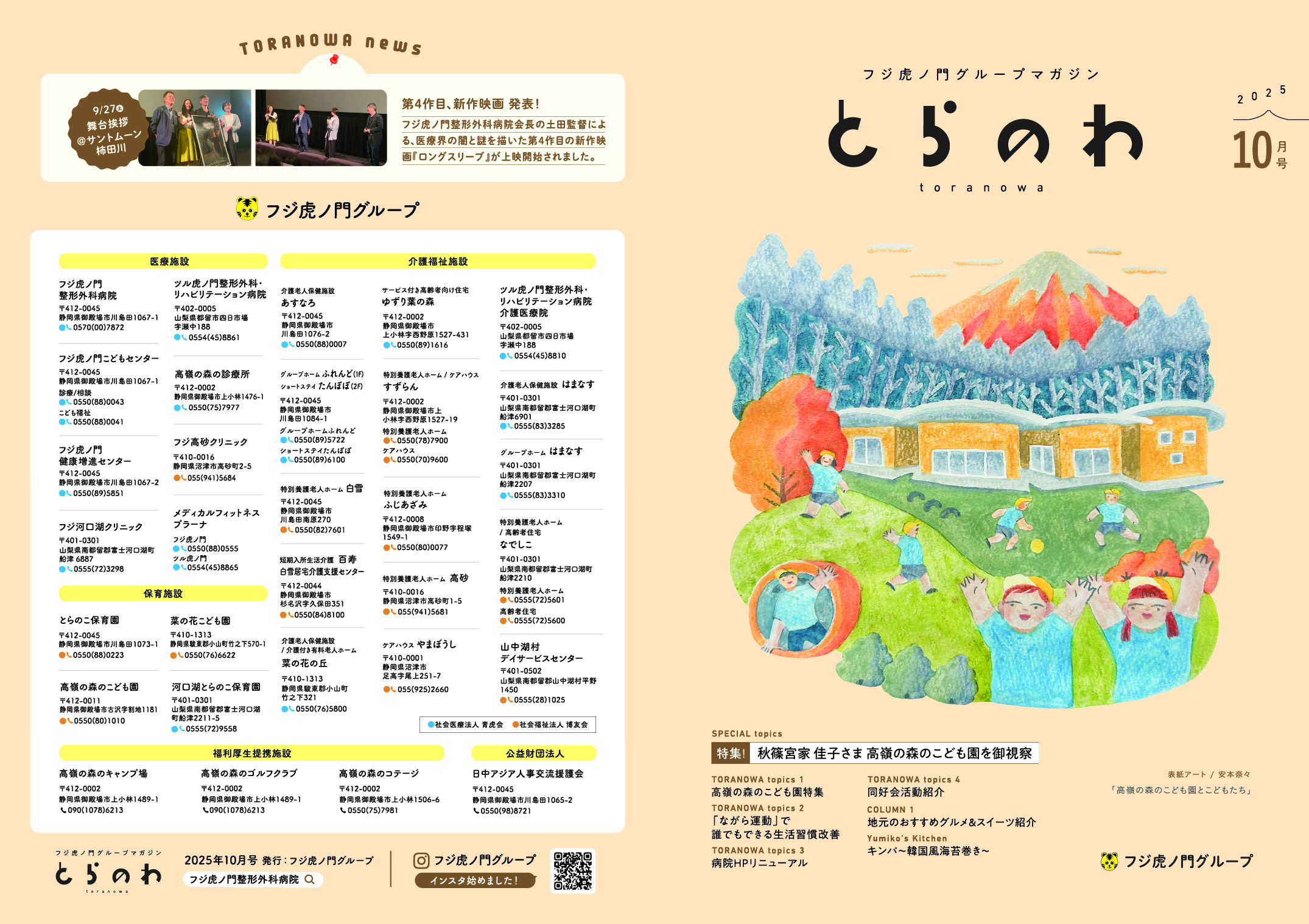 フジ虎ノ門グループマガジン『とらのわ』は、フジ虎ノ門グループが静岡県・山梨県の地域の皆さまに向けてお届けする情報誌です。健康維持のコツや緊急時に役立つ情報、各エリアのグルメ紹介、施設イベントのご案内、簡単で美味しいレシピなど、暮らしに役立つ内容が満載です。